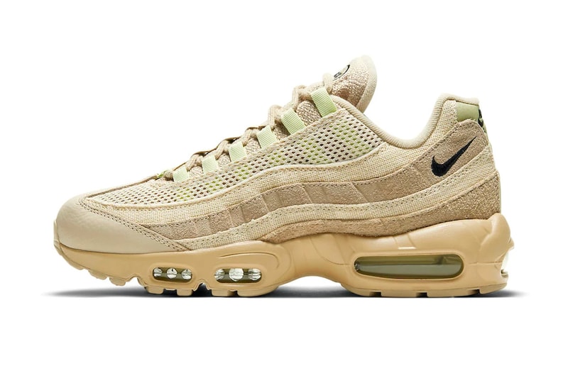 Wrapped in premium mesh, leather, suede, and burlap, the new silhouette offers a grainy texture with a mix of layers, along with various warm tones of sand, beige, and cream. The sand uppers are contrasted by hints of mint highlights on the lace loops and heel. Branding can be found on the tongue, heel, and ankle in the form of mini Swooshes. The iconic Air Max sole unit is also treated to a touch of mint and surrounded by a sand midsole.