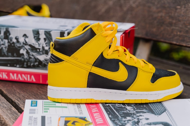 Taranto’s SNEAKERS76 celebrates the release of the Nike Dunk High “Varsity Maize” with a special commemorative capsule. First released in 1985 as part of the “Be True To Your School” pack, the sneakers referenced the colors of the Iowa Hawkeyes. Also regarded as the “Goldenrod” colorway, this retro colorway has remained one of the most coveted color combinations for Dunk fans across the globe — catapulted to an even higher echelon thanks to the 1999 “Wu-Tang” release.