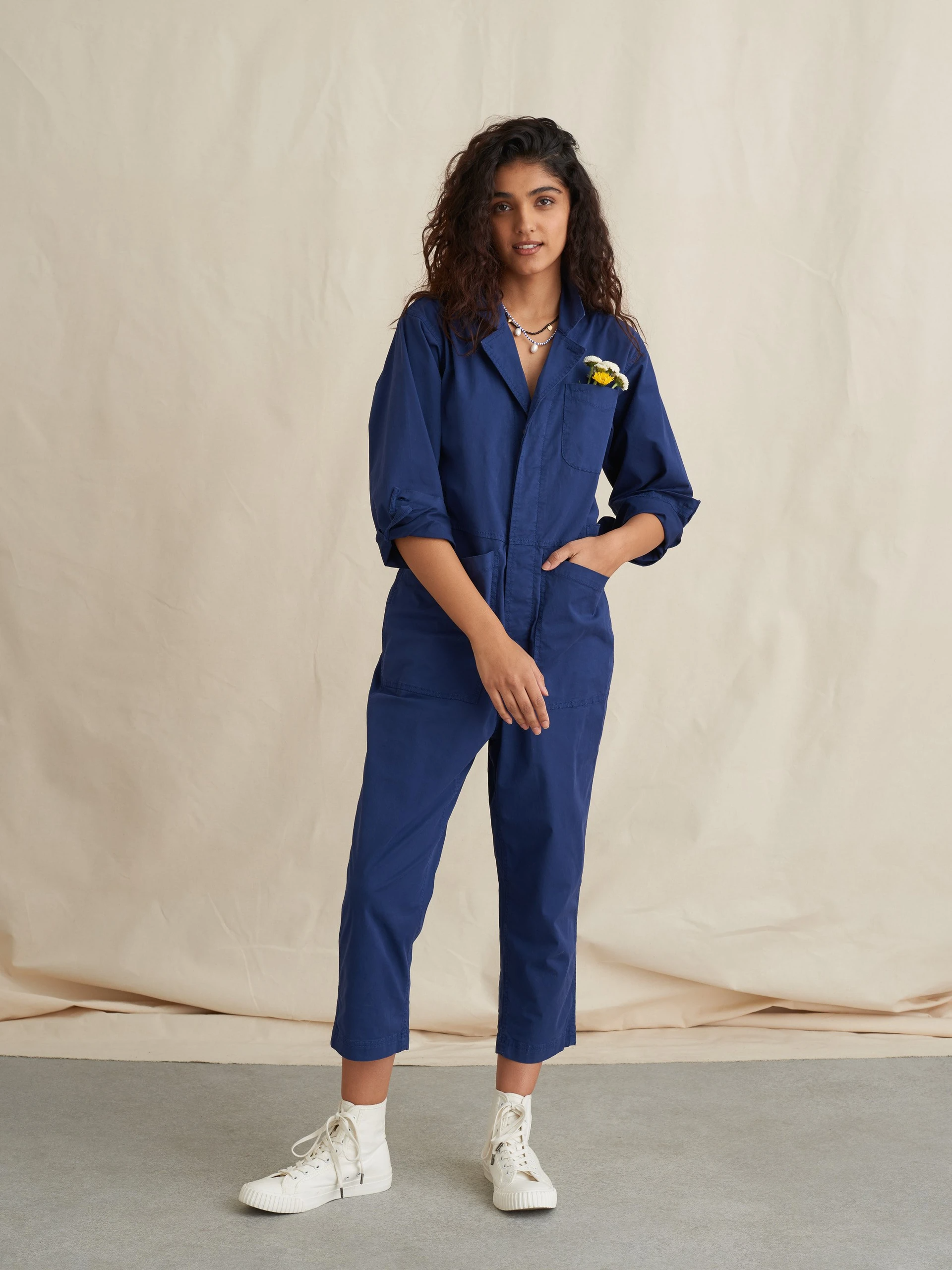 Everlane has perfected the denim jumpsuit. While dark-wash jean styles tend to be too thick or stiff to wear all over like this, the style has a very wearable, lightweight feel.