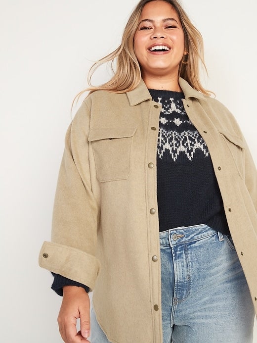 This plus-size option is essentially your classic camel winter coat in shacket form. This universal hue will get lots of wear and pair with virtually any outfit.
