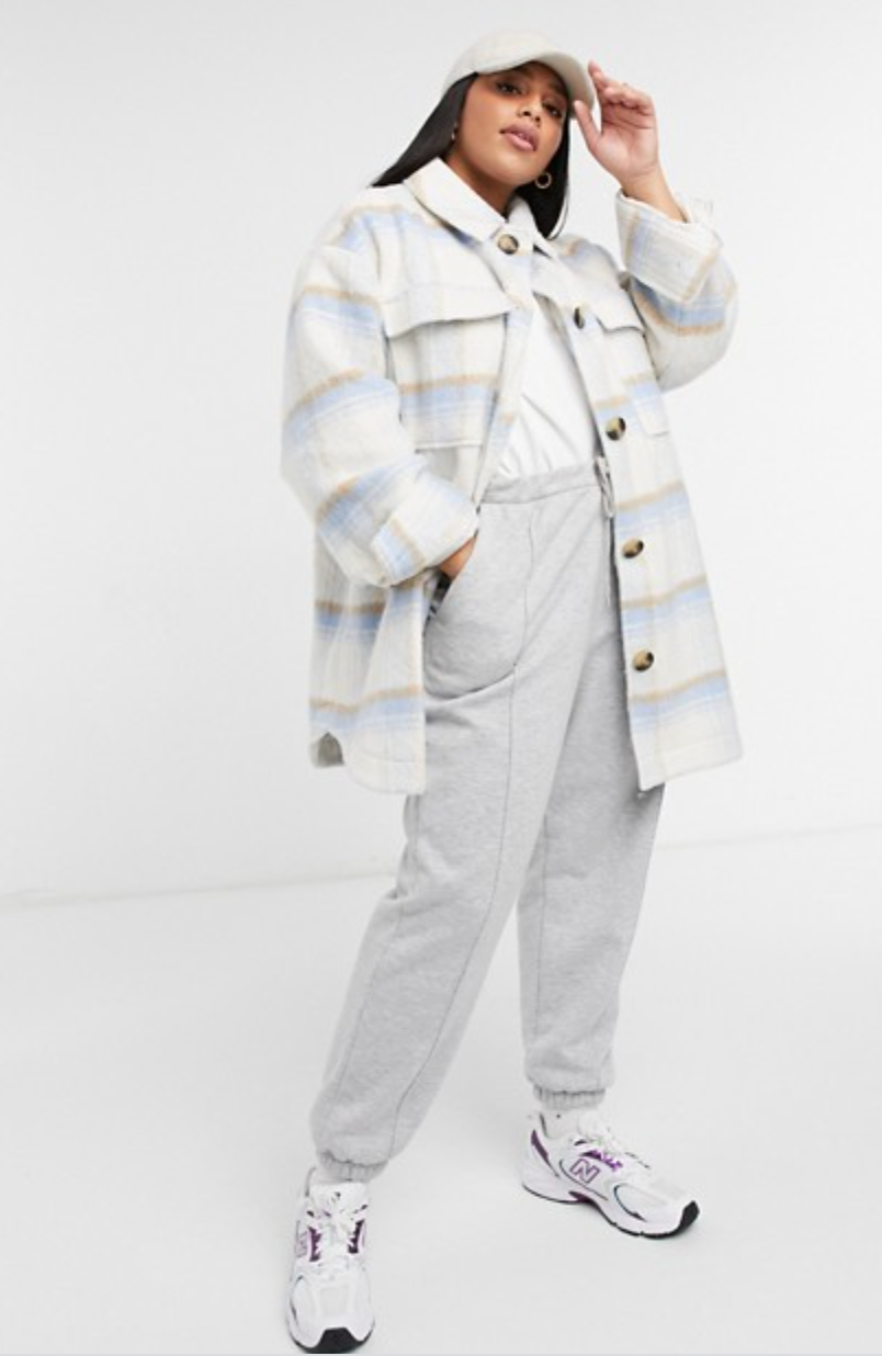 ASOS DESIGN Curve brushed plaid jacket in baby blue, $, available at