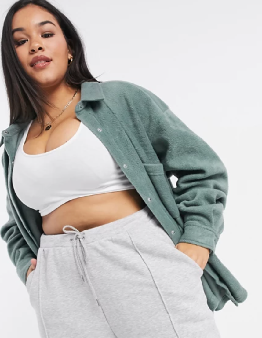 ASOS has a pretty wide assortment of shackets. This muted teal has range. Throw it over your favorite outfit for walking around the park on a slightly chillier day.