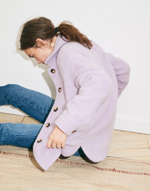 This lilac shacket is dying to be layered over a buffalo check shirt and worn with black Carhart pants and Doc Oxfords.