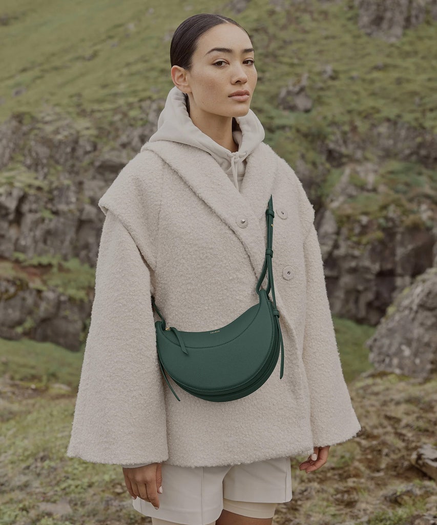 Sleek and shaped to hug the body just right, the crescent sling is the crossbody of the moment. With its curved silhouette and hands-free ease, it fits your essentials without bulk — perfect for running around the city or adding a modern touch to any look.