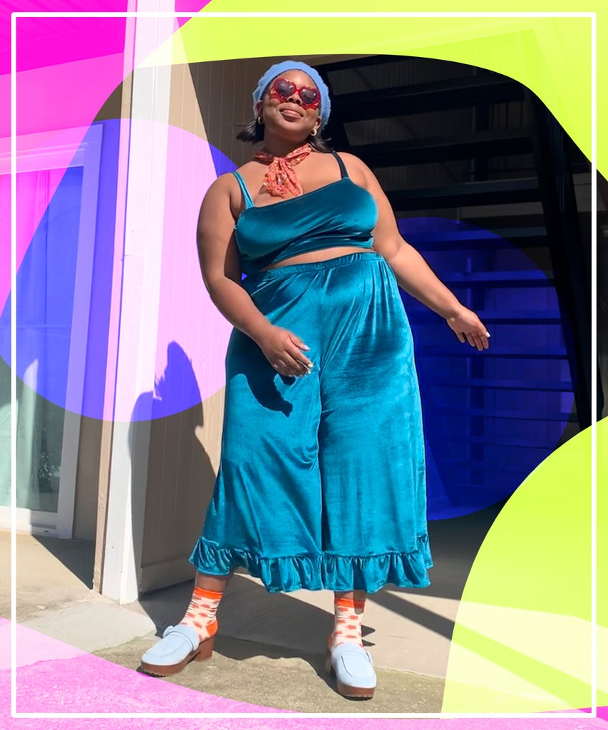 I really miss getting dressed! Don’t get me wrong, I love the latest style shift towards sweat-shorts, robes, and activewear that was born out of spending a lot more time at home — but, there’s something irreplaceably special about putting together a really cute look and taking it out into the world. With the vaccine rollout making socializing with friends a tangible possibility, I’m now finding myself dreaming more and more about all the fabulous plus-size outfits I’ll finally be able to wear. Ever since I was a kid, I’ve had a passion for trying out funky new fashion combinations — but, as a plus woman, finding the pieces for bringing my style visions to life has often felt like solving a particularly tricky jigsaw puzzle. Although there’s been a gap in fashion for excellent plus-size retailers, brands are finally starting to step up their inclusive offerings. Since I know firsthand how frustrating it can be to fully express yourself with what’s available, I’m sharing the plus-size outfit picks that I’ve been loving and wearing in hopes that they help to inspire you. Below, discover five of my favorite looks of the month along with corresponding shopping suggestions for how to recreate them. I’ve put together everything from a Y2k-inspired vibe to some 90s-style street glam and even an ode to Emo.