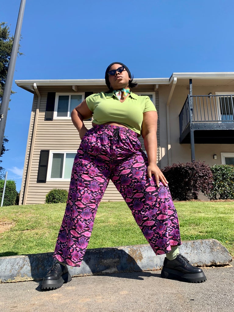 I don’t know about you all, but I definitely had an emo phase in middle/high school. It’s been years since I jammed to the overly self-indulgent emo music that makes up the pop-punk genre. However, something about a global pandemic really brings out the angst and got me listening to all the new pop punk hits. I rang in my adult emo phase with funky snake print pants and a green cropped top. I love how way back when Emo music had it’s hay day funky prints and bright colors were dominant. I love the colors in this specific outfit a lot. The chunky loafers add the right amount of edge.