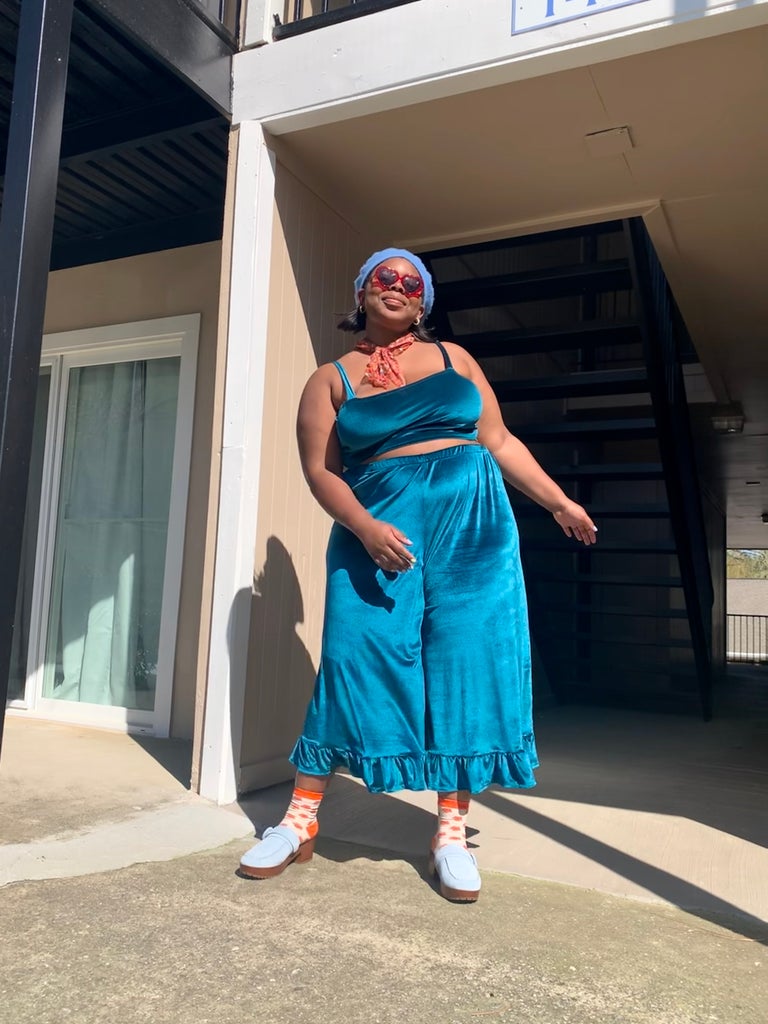 This outfit will have you feeling groovy and “Love Shack” ready! This set is made-to-order from the brand K.S. Garner. Kelsey Garner runs a slow fashion miracle that is very plus-size friendly, and they also take custom measurements as well – everyone is included.