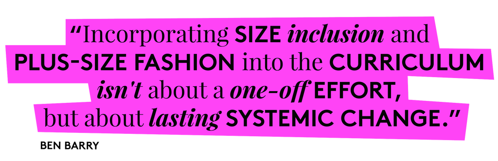A better question may be this: Why not normalize size inclusivity in technical classes while also offering plus-specific ones for students who want to expand in that market? “Incorporating size inclusion and plus-size fashion into the curriculum isn’t about a one-off effort, but about lasting systemic change,” says Barry. “It’s about transforming an entire educational system, not just offering it off for your elective.”