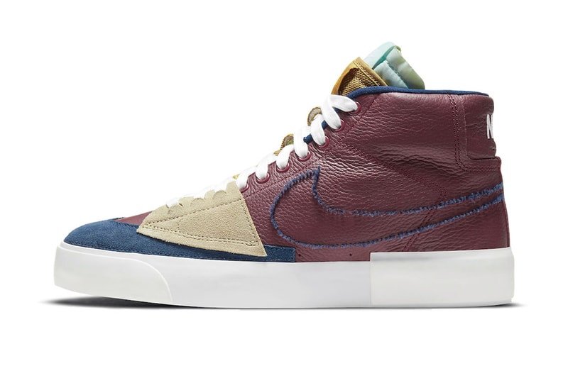 Nike SB‘s latest Mid Edge Blazer is a meticulous patchwork of contrasting textures and quirky deconstruction. Arriving in a dark “Team Red” update, the new rendition follows equally crafty “Oracle Aqua” and “Obsidian Mist” colorways seen back in May.