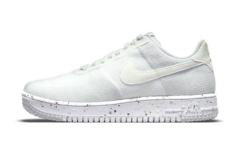 Nike‘s Air Force 1 Crater Flyknit has been given a crisp “all-white” iteration. The silhouette is part of Nike’s effort towards more eco-friendly production, called “Move to Zero” — at least 20 percent of the shoe is made from recycled materials.