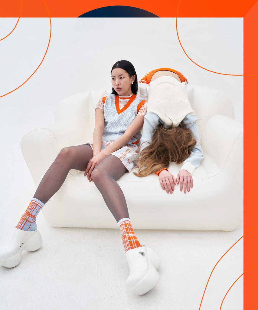 Shortly after Glemaud’s footwear debut, clogs — from bulbous styles to more understated ones — showed in other collections. At Veronica Beard, sisters-in-law and co-founders Veronica Miele Beard and Veronica Swanson Beard styled their signature wools, plaids, and florals with high-heeled suede clogs. New York-based indie label PH5’s take on the style was a bit more unexpected, with white, platformed clogs appearing throughout the 25-look collection, paired with asymmetric dresses and geometric leg warmers.