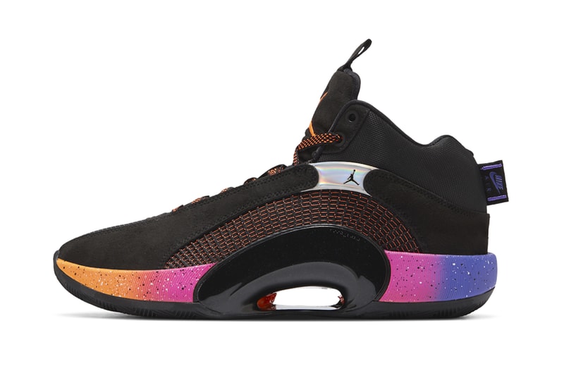 Jordan Brand has colored the Air Jordan 35 with bright “Sunset” gradients. This iteration arrives just five days after CLOT and Jordan Brand unveiled its “Warrior Jade” colorway.