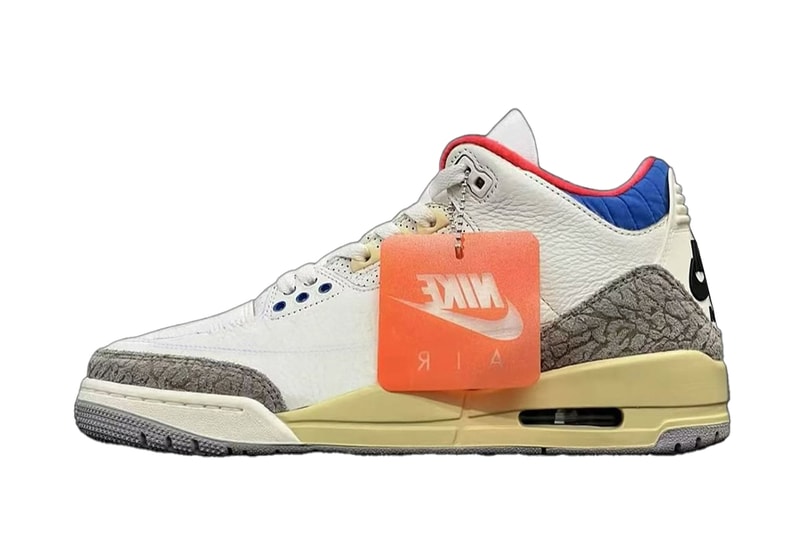 Teased here for the first time, this new “Seoul 2.0” take on the Air Jordan 3 puts an aged twist on the sneaker. Its white sole unit has noticeably yellowed and now carries a gray outsole while the elephant print mudguard and heel counter has shifted from black-on-gray to two shades of gray. Nike Air heel branding returns in black while the red and blue collar features an adjusted texture. We remain without a complete look at the sneaker, so it is unknown as to whether it again features the Hangeul detailing at the interior tags of the tongue, however, it does feature the South Korean flag on the tongue of at least one shoe once again.