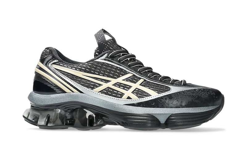 The version nods to the concept of “Insulated Grottos,” realized through layered mesh, curved leather panels, welded eyelets, and fluid linework inspired by artist Edith Dekynd. A hallmark of the Kiko x ASICS language — the off-centered pull tab — makes its return on the tongue.