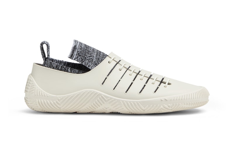 Functional details, such as the Vibram rubber grip outsole, removable knit sock and elasticated lacing system, elevate this shoe from a rubber sandal to a tech-lover’s sneaker. Boasting comfort and assured performance, this sneaker is one to take through to the slippery fall months.