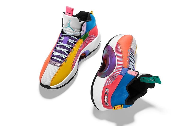 Since 2003, Carmelo Anthony has been a valued member of Jordan Brand‘s basketball roster. And for this season, the Jumpman team has crafted the former All-Star with a plethora of special footwear pieces, the latest being this Air Jordan 35 “Kiyan” PE which is inspired by his son’s favorite colors.
