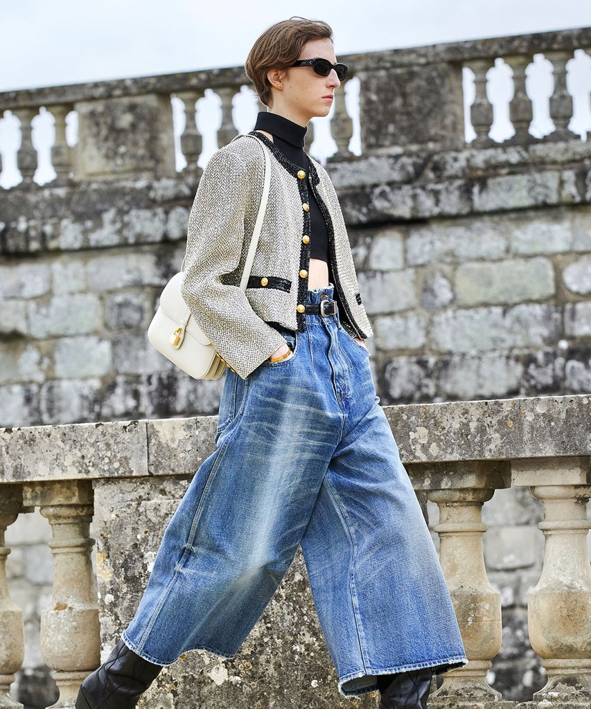 Teased as a continuation of the luxury brand’s Summer ’21 collection, the new line was a “utopian parade and melancholic daydream of youth interrupted,” according to the show’s notes. Yet seeing an abundance of wide-legged denim cuts in the show, which took place at the 17th-century Château de Vaux-le-Vicomte outside of Paris, made it clear the kids are alright.