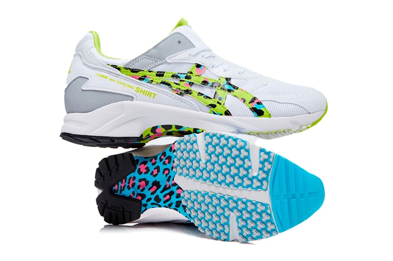 Just in time for the fall/winter season, the second iteration takes on an animalistic aesthetic by fusing pops of neon leopard print throughout the silhouette. The bold-colored designs are presented on the sidewall and the shoe’s underfoot. The rest of the shoe’s body is comprised of mesh and leather in white with additional suede overlays. The trainer comes in lime and aquarium colorways.