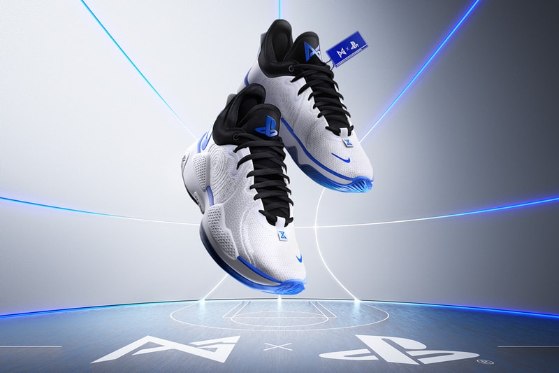 As the PlayStation 5 marks a new era for Sony‘s gaming console franchise and the PG 5 is George’s most technologically advanced signature sneaker yet, the parallels are obvious. The shoe’s design takes from the PS5’s striking lines and clean, no-frills color scheme by blending a white base with blue and black accents. Yujin Morisawa, the designer responsible for the PS5’s shape worked with PG 5 designer Tony Hardman to bring both worlds together, resulting in rich details from heel to toe.
