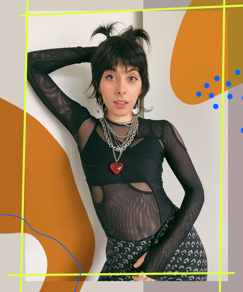 A few months ago, Panzoni coined “subversive basics” on her TikTok channel, @thealgorhythm, where she analyzes fashion trends and how they translate into social and cultural movements. What does the term mean? Think: leather pants with hipbone cutouts, mesh turtlenecks, and cardigan tops missing essential buttons. “This trend is all about basics that rebel up to the point of losing their utility,” explains Panzoni, who used to be a WGSN fashion forecaster before going freelance.