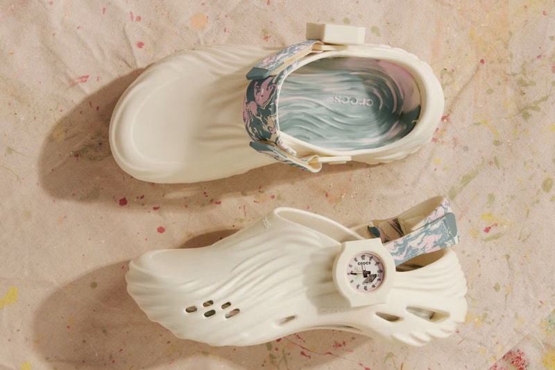 Casio has revealed a one-of-a-kind collaboration between G-Shock and Crocs. The unprecedented collaboration combines the world of watches and footwear by bringing together two cultural powerhouses for a limited-edition collection. Debuting the collaborative Crocs Echo Wave, the new clog makes way for the first partnership to feature an exclusive design of a custom marbled ankle strap inspired by G-Shock’s iconic durability. The release also sees the Crocs Echo Wave embrace a glow-in-the-dark finish along with a modular watch case that can be either worn on the wrist or snapped directly onto the shoe. The watch case is removable from the strap and can be transitioned seamlessly onto the clog’s rivet system.