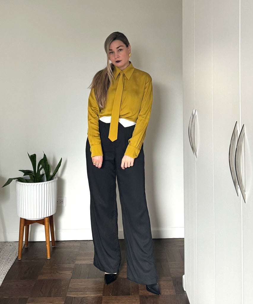 I coveted this Kallemeyer tie shirt for months before pulling out my credit card (just look at the color!). And I am so glad I did — I continue to wear it season after season. Similar to going-out tops, statement button-down shirts are an easy way to add a touch of interest to jeans or black pants (my go-to winter bottoms) with minimal effort. Other shirting styles that I wear on repeat: J.Crew’s (now-sold-out) feathered-cuff shirts — that I have in two colors! — as well as, more recently, the Dorothee Schumacher shirt with a long train that gets me compliments every time I wear it.