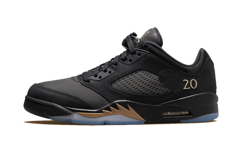 Jordan Brand will be honoring the class of 2020-2021 this summer with a special bold iteration of the Air Jordan 5 low. The commemorative sneaker features black nylon uppers with soft leather overlays. Gold detailing is found on the forefoot teeth panels, tongue branding and the lateral “20/21” branding. Moreover “Smokey Black” netting and tonal black midsoles are also featured on the shoe.