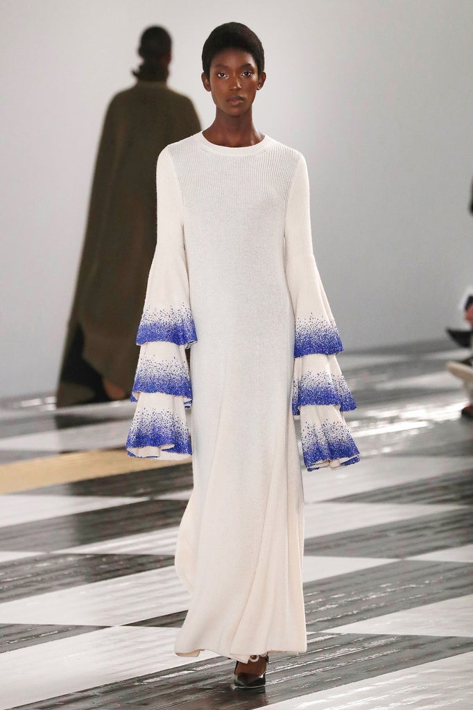 Like many others this month, partially in response to the looming threat of the new coronavirus, Anderson chose to broadcast the show live via YouTube. The video featured a split screen, one side showing Gwendoline Christie, Karlie Kloss, Tommy Dorfman, and more arriving at the show, while the other gave viewers a firsthand look at renowned Japanese ceramicist Takuro Kuwata discussing how he adapted his process of crafting ceramics to collaborate with Anderson on a series of accessories for this collection. “Loewe combines elements of fashion, art, and craft,” Kuwata says. “I’m inspired by what the house is doing.” Like Anderson, both Kuwata and Rapinoe are at the top of their respective fields. As masters of their craft, they’re pushing against the boundaries of what they do, to turn their mediums — sport, ceramics, fashion — into something like art as well.