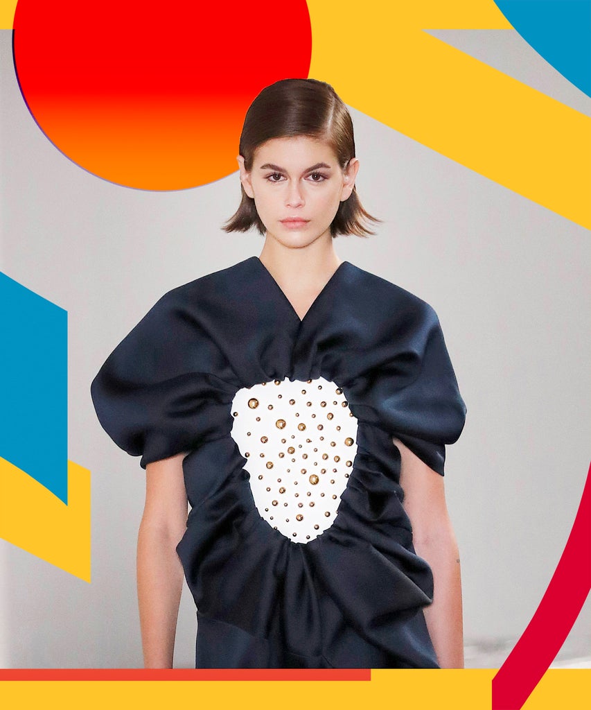 “I collect Takuro [Kuwata’s] work and he’s influenced an entire generation of ceramicists,” Anderson said about the artist. Kuwata’s work appeared in the forms of ceramic baubles that were attached to the brand’s new lunch-bag-like drawstring Flamenco clutches, as well as breastplates woven into the center of dresses.