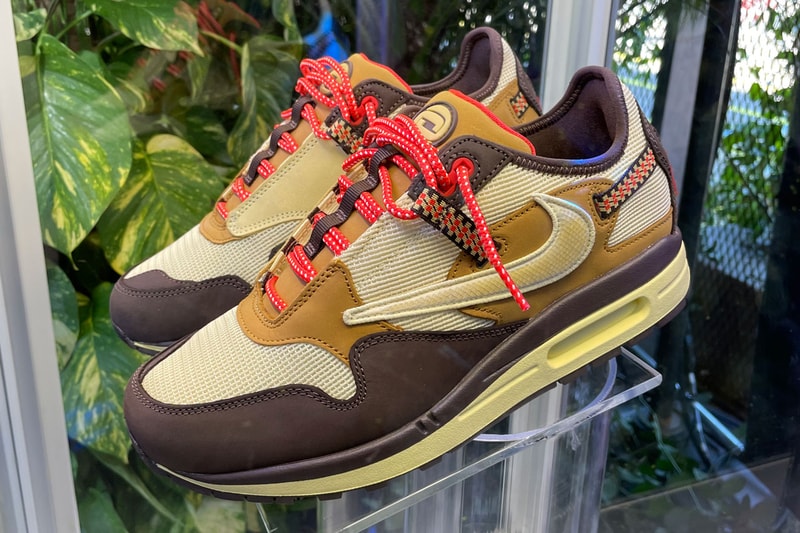 Scott’s Nike Air Max 1 “Catcus Jack” sneaker, which is set to release on December 16, is also displayed in two colorways: “Saturn Gold” and “Baroque Brown.” Among varying earth tones, the design features an ACG-like lacing system and a similar reversed Swoosh logo. Nike and Cactus Jack branding appears across the inserts and on the heel flags.