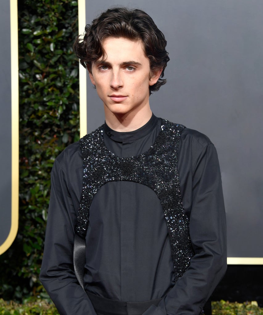 Bibs of this nature first garnered attention back in 2019, when Chalamet arrived on the Golden Globes red carpet wearing an all-black Louis Vuitton by Virgil Abloh look that included a sequined version of Bloom’s swirl-print top layer. The item became a sartorial talking piece for the evening, with many wondering what the fashion item even was. When asked about it on Ellen, the actor sounded only somewhat less confused: “I thought it was a bib. They told me it was a bib,” he said to host Ellen DeGeneres.