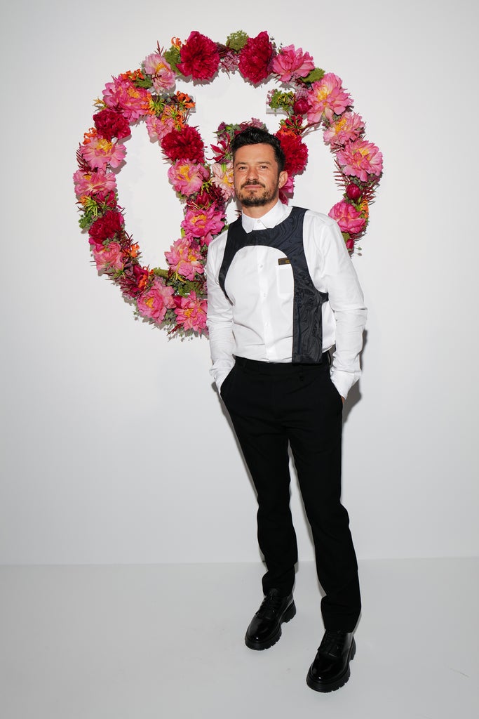 The only thing better than Timothée Chalamet and Michael B. Jordan wearing high fashion bibs is Timothée Chalamet, Michael B. Jordan, and Orlando Bloom wearing them. On Monday, Lord of the Rings star Bloom attended a dinner for Louis Vuitton’s Les Extraits Collection — a new fragrance for the French fashion house — in Paris alongside Katy Perry, as well as other A-listers like Sophie Turner, Joe Jonas, Florence Pugh, and Bella Hadid. For the star-studded occasion, the actor donned a style his fellow celebrities have been warming up to — even if their fanbases have been slower to embrace: a patterned, and befuddling bib.