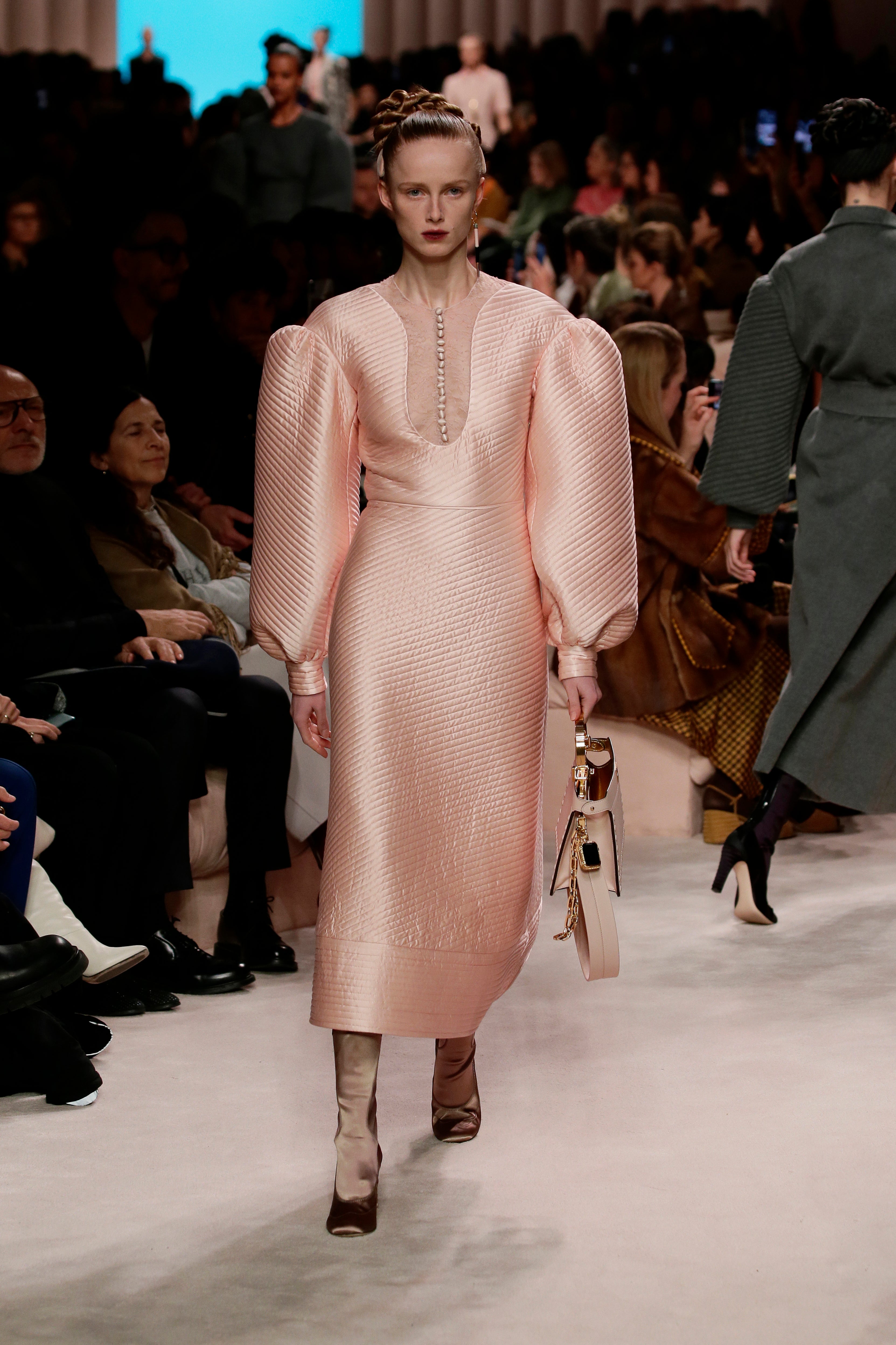 An echo from the U.S. awards season and New York Fashion Week, sleeves in Milan were bigger, frillier, and louder than ever. It’s perhaps the most refreshing and thorough update to the silhouettes that dominated the 2010s. This new decade is starting off with strong arms for women, and I’m living for it. At Fendi, shoulder lines dropped and sleeves billowed outwards. At Max Mara, sleeves sprouted layers of frills. It was ‘80s-meets-Renaissance-meets-future, a new kind of power dressing for the woman who isn’t afraid to take up space.