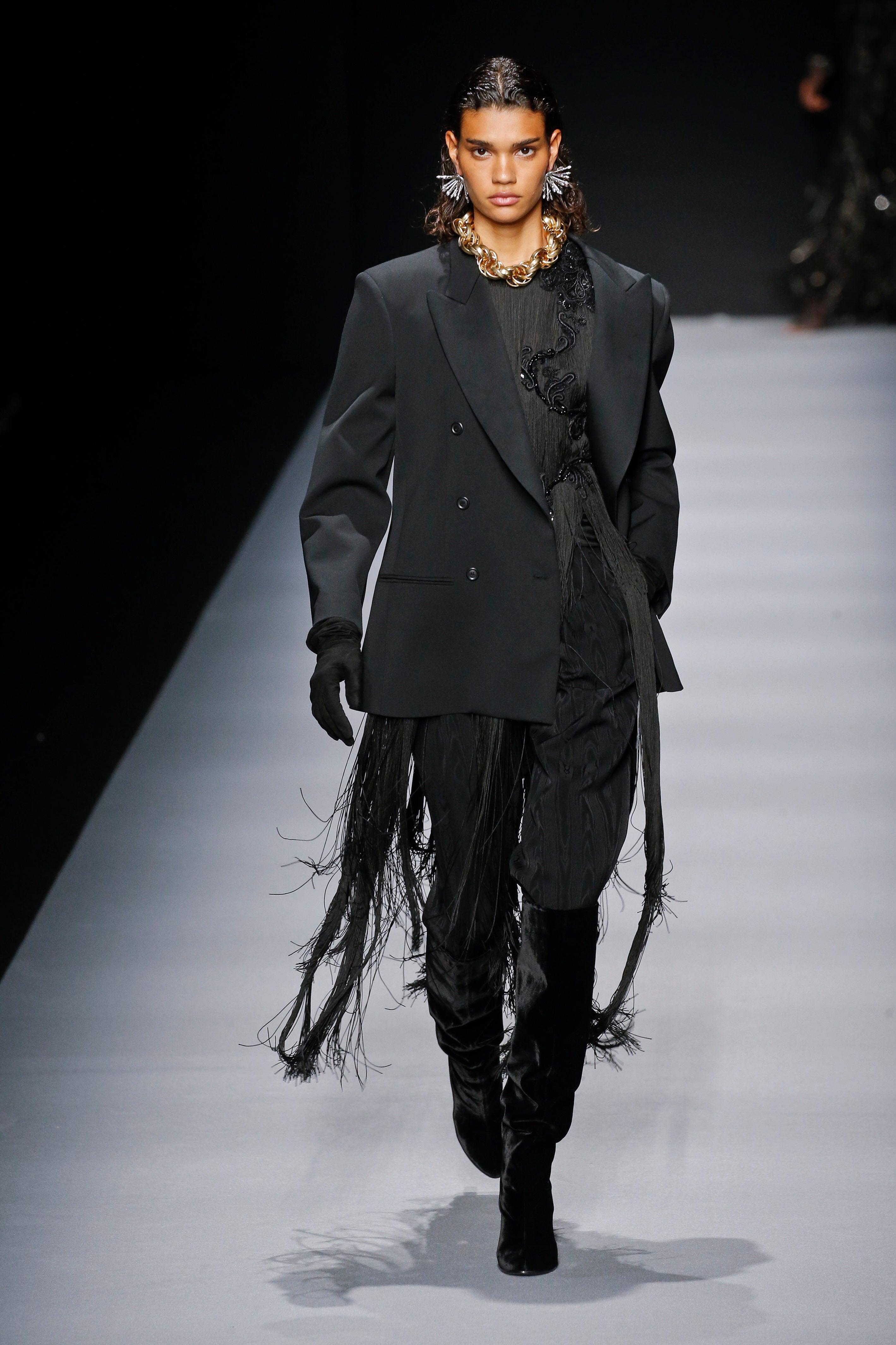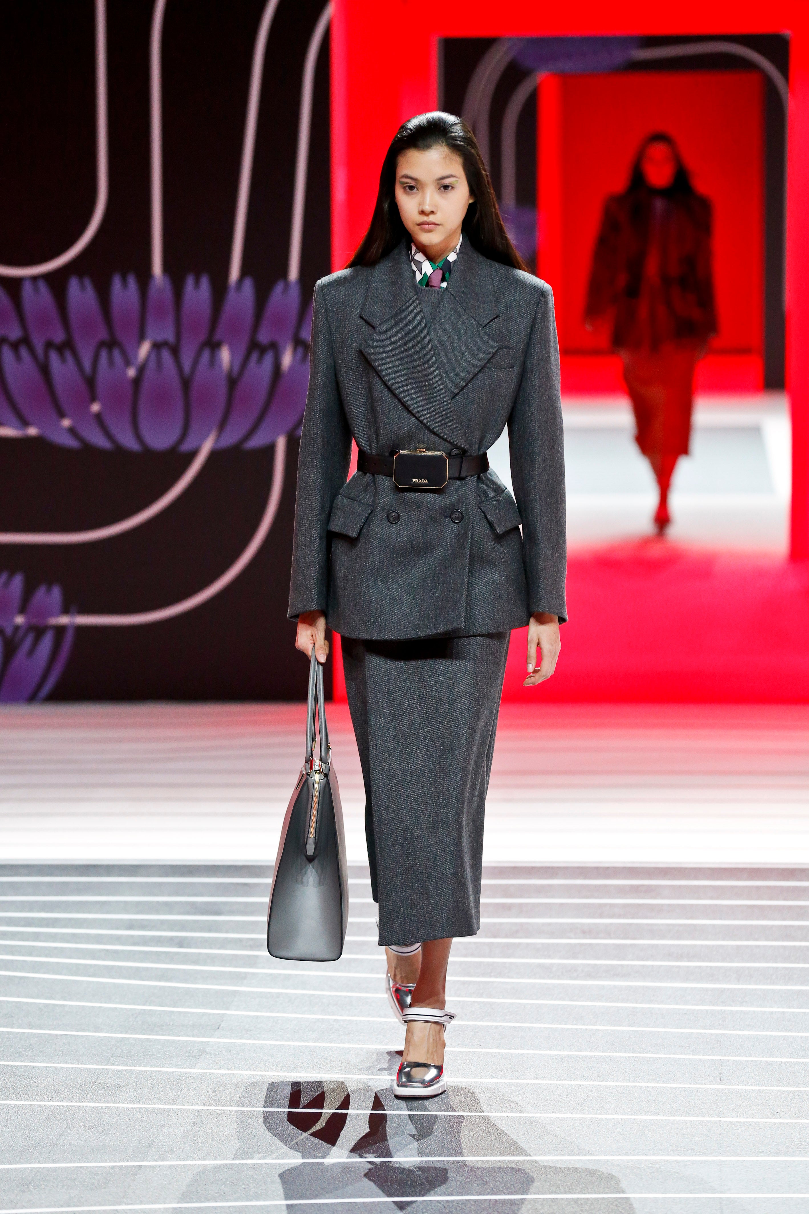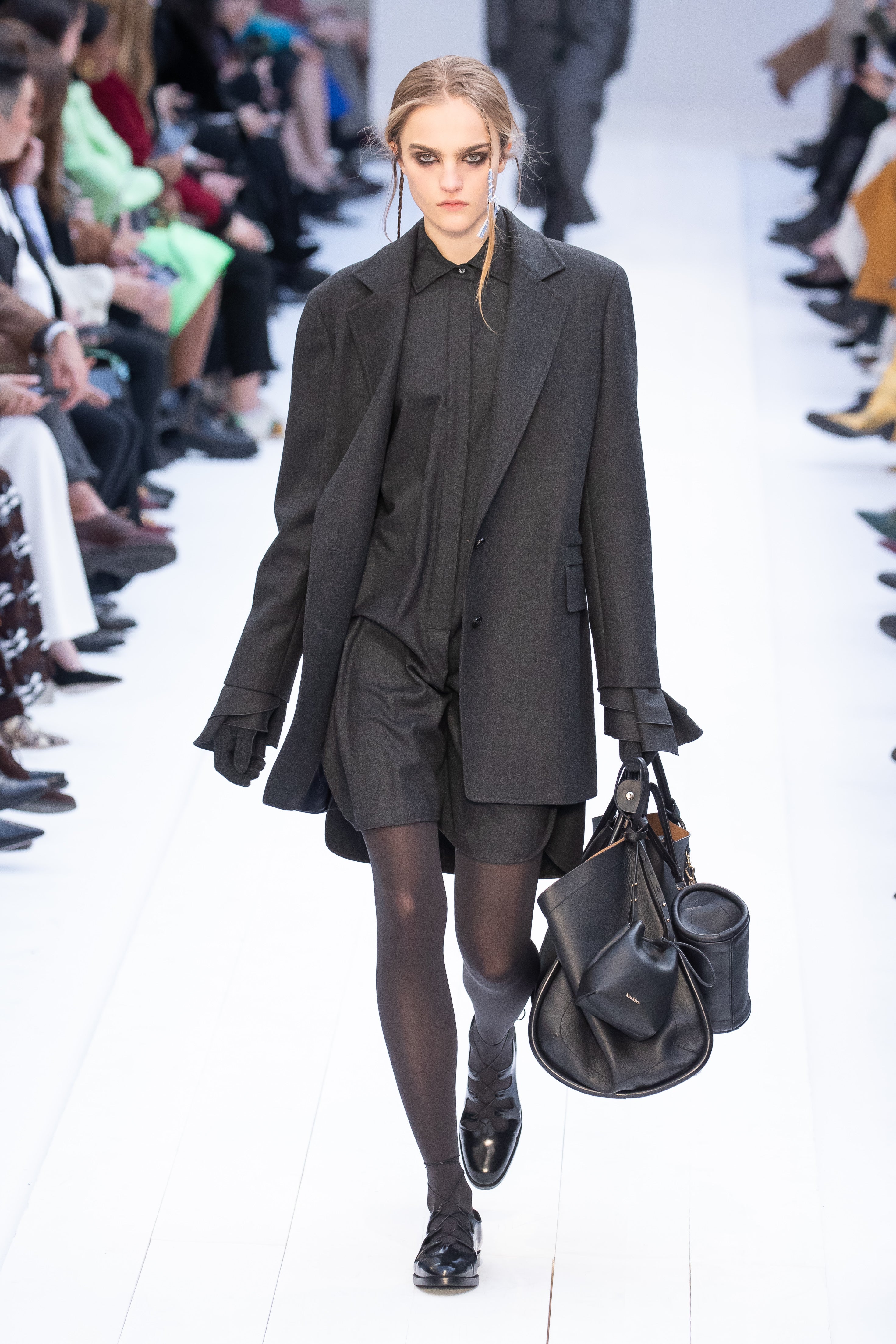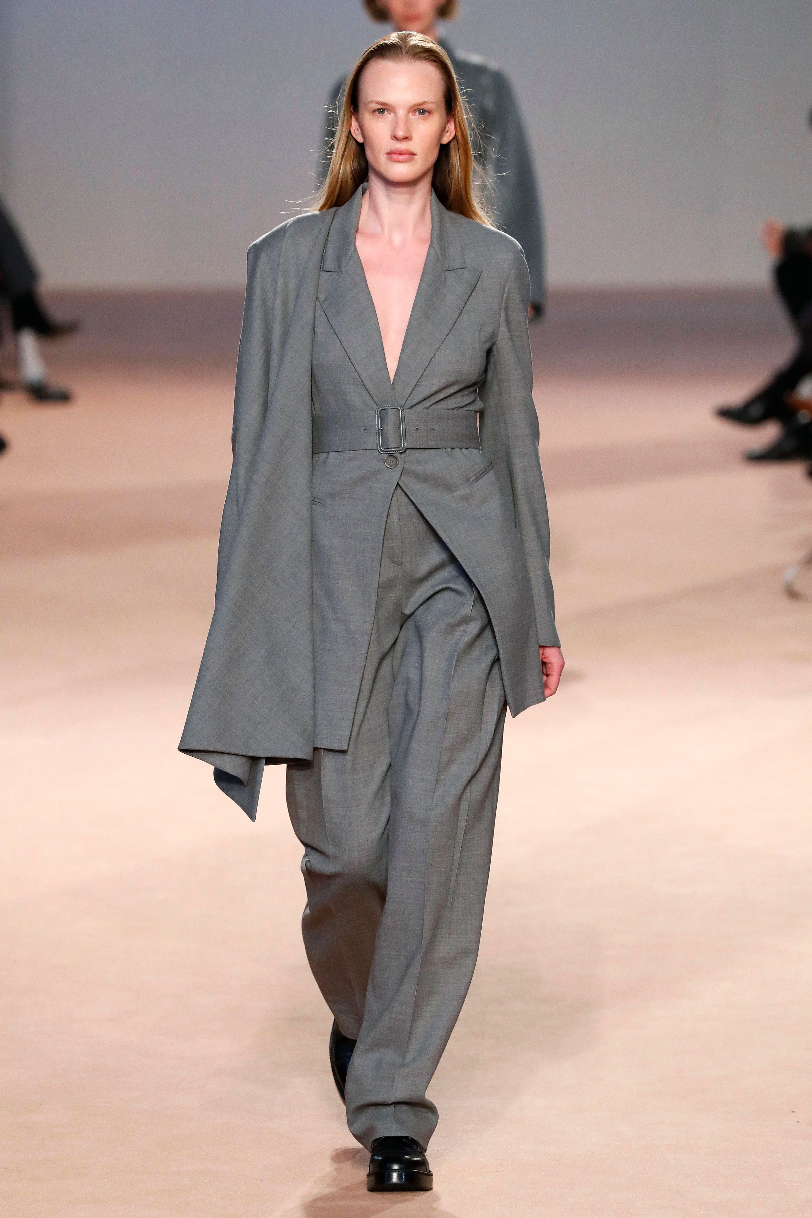 In sharp contrast to frills and bows, many shows also including suiting, and even more shows including head-to-toe gray pantsuits. Max Mara, Fendi, Prada, Ferragamo, and more all took turns adding a unique spin to this otherwise classic (and, typically, relatively boring) wardrobe staple, with wide legs, high waists, big shoulders, and, yes, sometimes fringe and ruffles. The perfect answer to your work-related clothing crisis, these gray suits for fall will look as good with a silk blouse during the day as a lacy cami at night.