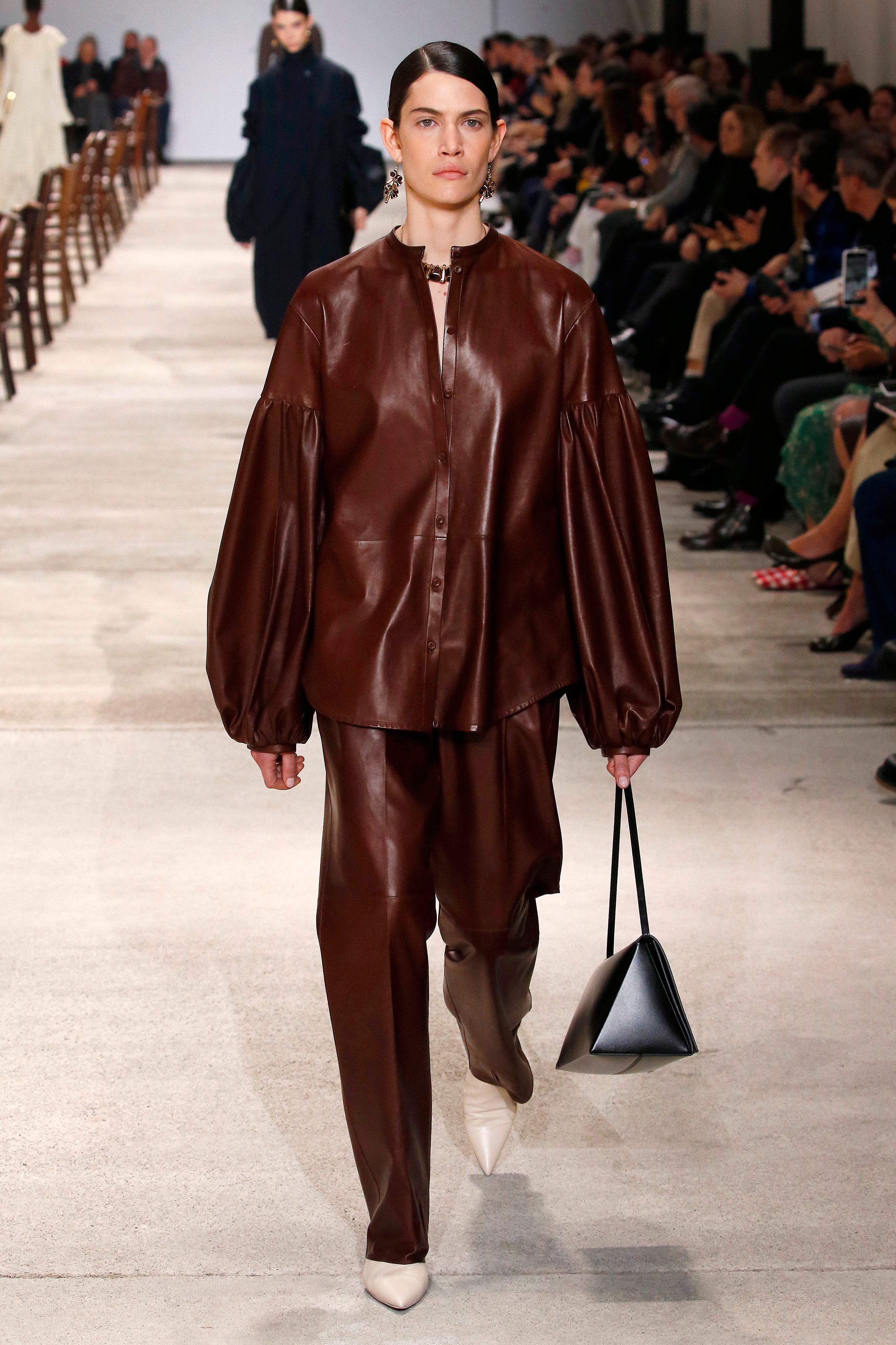 There is probably one week per year in New York City when leather is weather-appropriate, but in Milan, it’s pretty much the It-item for fall 2020. From yellow leather shirt dresses at Fendi to patchwork leather dresses over matching pants at Marni, buttery leather of all shades and shapes was layered with — well, more leather.