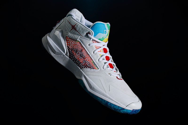 Set in a white-based debut colorway, the basketball shoe features a midcut silhouette with a technical mesh base reinforced by matching heat-welded overlays and synthetic panels at the toe. Decorative details come in the form of a multicolor embroidered pattern at the midfoot that continues and spreads on the tongue and a frequency grid motif at the ankle. Branding elements come in the form of a distinct 3D New Balance logo at the rear, KAWHI branding on the tongue and the player’s signature on the heel tab. Elevating the shoe is a sculpted foam midsole paired with a treaded icey rubber sole.