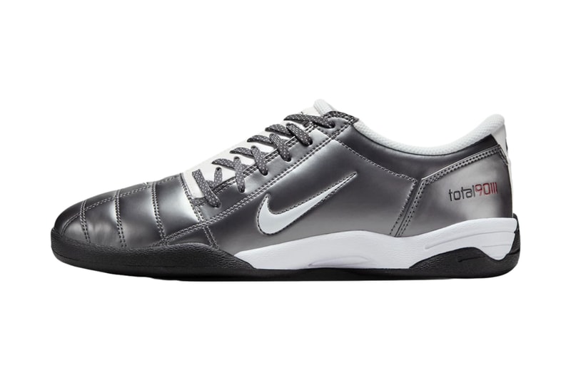 Its uppers are built with white leather on the medial and across the forefoot, and chrome silver on the lateral and quilted toebox. White, silver and red land on the branding details, including the panel, toebox and heel swooshes, the circular 90 logo and the Total 90 III emblems on the tongue and ankle. Meanwhile, the insoles hide a star black and red combination.