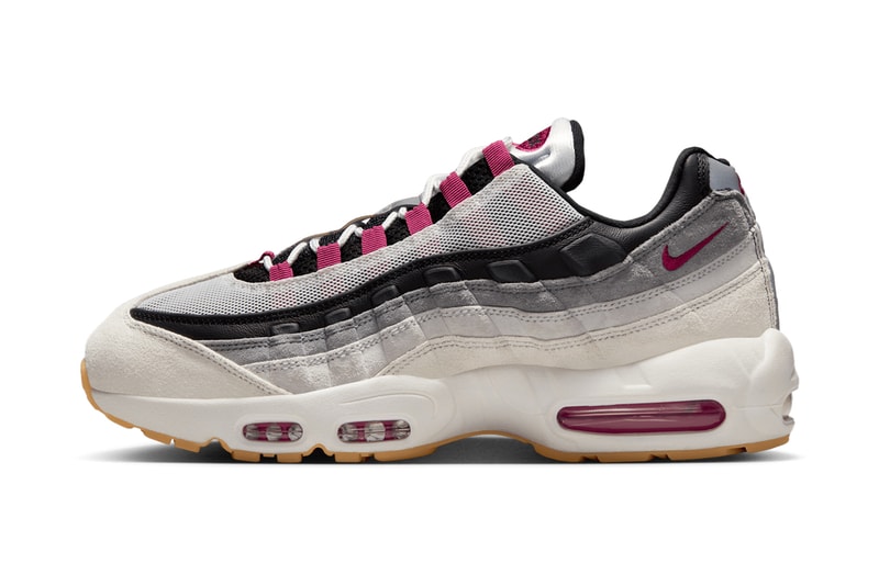 Original Story: Early looks of the upcoming Nike SB x Air Max 95 have surfaced online. Since a first look video was initially shared on the @Hobofett360 account on X, the shoe has garnered great attention, from its all-black colorway. Now, the retro 1995 running shoe is getting a 30th anniversary update with a revamped outsole traction pattern that differs from the classic herringbone tread. The cross over between the SB and the Air Max 95 is seen more clearly in the leaked “Cactus Flower” colorway. Constructed out of a mix of leather and suede materials, the shoe features neutral tones and pink accents on the tongue, Swoosh branding, eyelets and Air Max bubbles. Look out for the release coming this Fall.