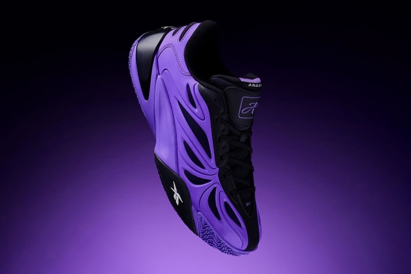 The upper features a molded TPU exoskeleton with ventilated mesh panels, a material choice inspired by Reese’s strength and grace, which ensures durability and stability. The vibrant “Charm City” colorway makes an instant impression, a bold choice that stands out on the hardwood. The black upper features solar purple overlays that accent the rest of the shoe and the Angel branding throughout.