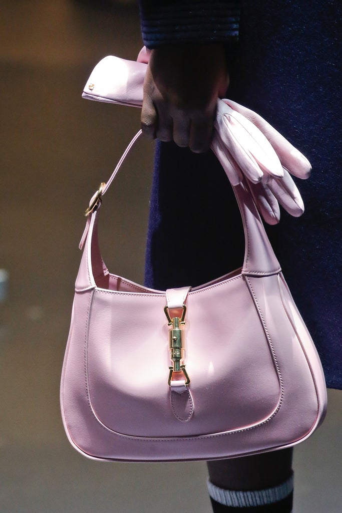 At its fall ‘20 runway show, Gucci reissued a version of its Jackie bag, the slouchy, hobo shoulder bag first introduced in the 1950s as the Constance, but was renamed the Jackie bag in 1964 after First Lady Jacqueline Kennedy Onassis who reportedly used them to shield herself from aggressive paparazzi. The ladylike handbag came in both cloth with the brand’s signature GG monogram and lambskin, and always included a signature piston strap closure. In 2009, the bag was reintroduced for the first time by then-creative director Frida Giannini, who changed the name to “the Bouvier” (Onassis’ maiden name). Alessandro Michele has since changed the name back and shrunk it down; the fall ‘20 versions also come in trendy pastel hues and patent leather.