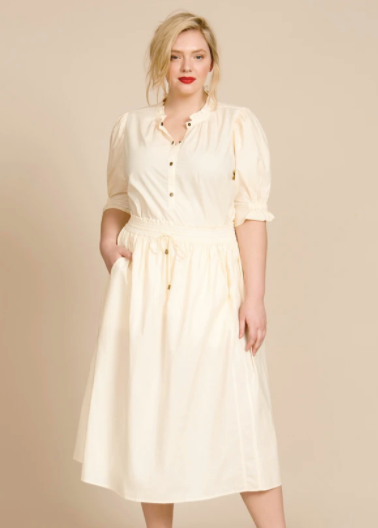 Only Curve poplin mini smock dress with puff sleeves in beige, $, available at