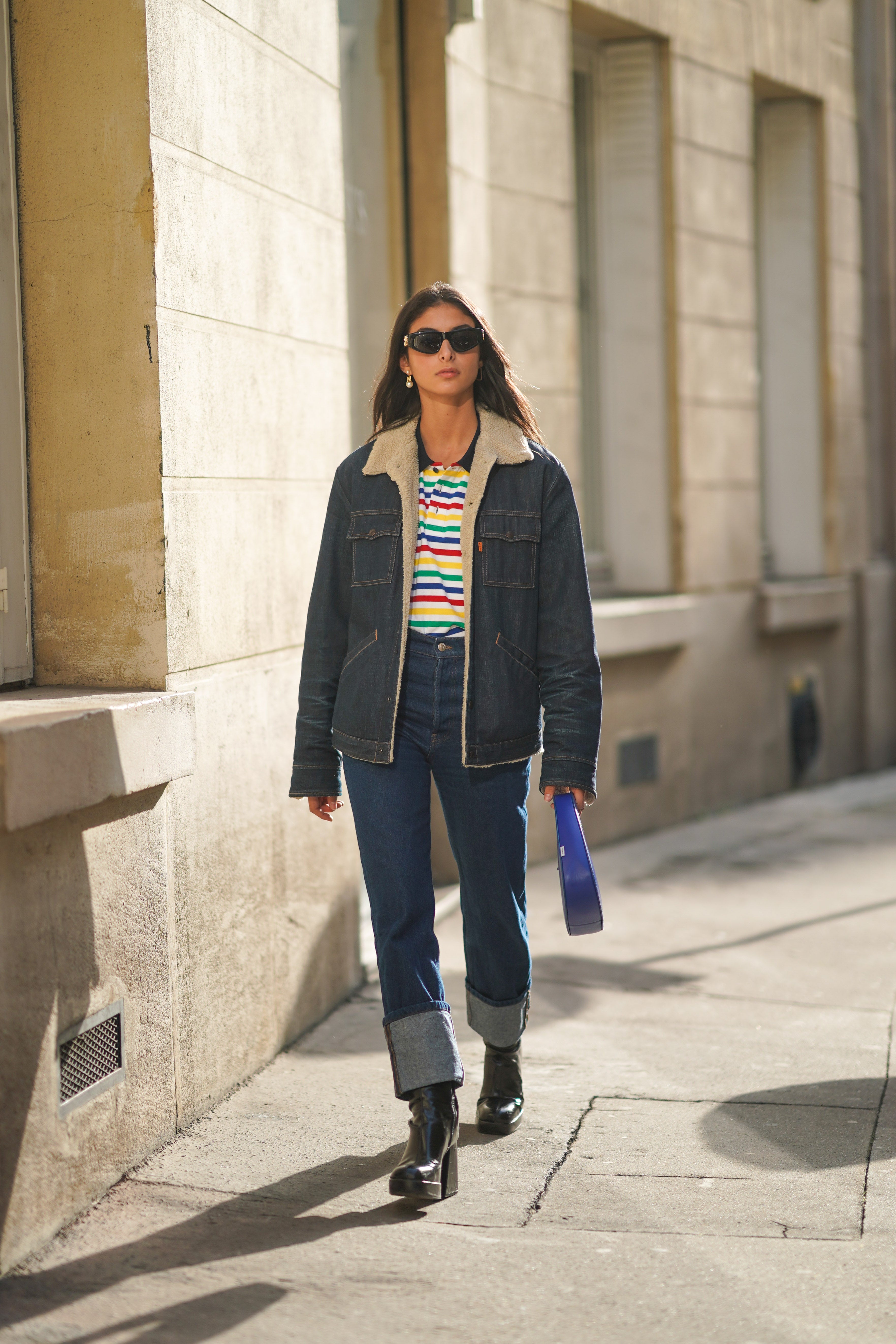 Yes, there were still designer bags and shoes, but they weren’t paired with equally glamorous silhouettes. Rather, most were accompanied by classic denim pieces. More specifically, Parisiens sported straight- and wide-leg jeans to this season’s runway shows. Sorry, millennials, but there were no skinny jeans in sight.