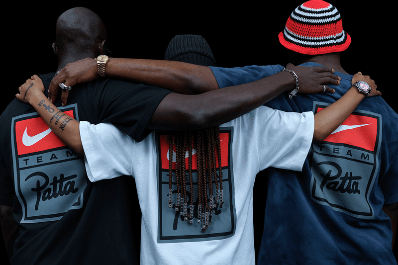Furthermore, the brands celebrate 20 years together with a relaxed sportswear range. An oversized dual-hued tracksuit is the star of the show, embroidered with collaborative logos and “PATTA GOT LOVE FOR ALL” text at the back. “TEAM PATTA” tees and Air Max-specific socks complete the collection.