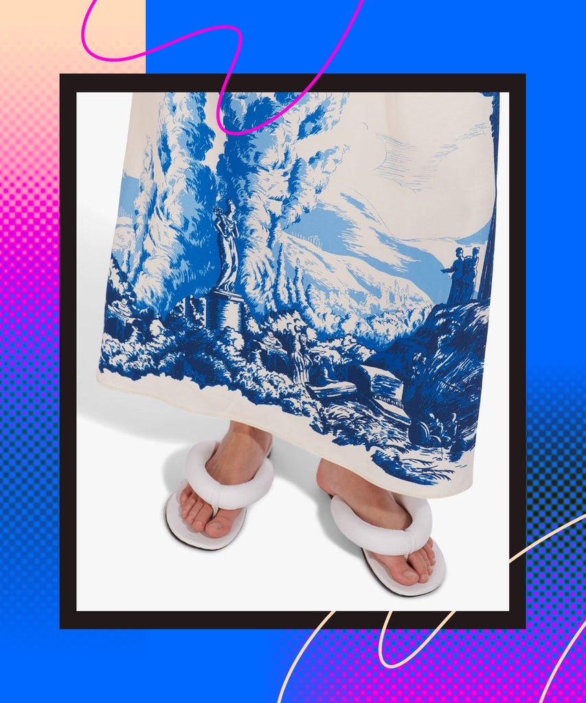 If you have struggled to find the middle ground between lockdown loungewear and full-blown party attire in the wake of nationwide reopenings, this rising footwear trend is for you. On Wednesday, global fashion shopping platform Lyst named “pillow sandals,” — flip-flop- and slide-style sandals with padded, pillow-like straps — as one of the hottest shoe trends of the summer. According to their most recent data drop, which was crafted using consumer shopping data from over 100 million online shoppers, searches for “pillow” and “puffy” sandals have spiked by 129% in May.
