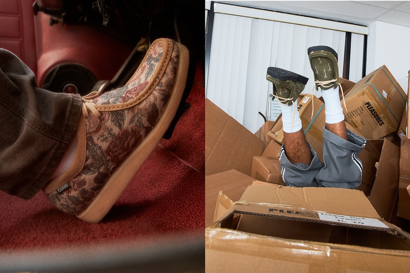 Take a look at the “Floral” and “Olive” P204 shoes from PLEASURES and Padmore and Barnes in the gallery above. Both shoes will be available from the PLEASURES web store on February 5.