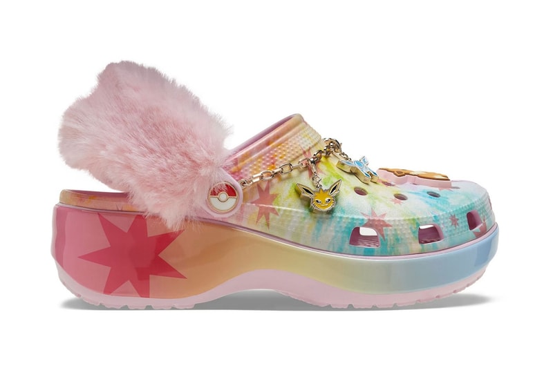 Crocs is getting ready to evolve the footwear collection with the Classic Platform Clog. This whimsical new release is a vibrant celebration of one of Pokémon’s most beloved and adaptable creatures, “Eevee.” This “love letter to pastel lovers, Pokémon fans, and comfort seekers” is built on Crocs’ popular Classic Platform silhouette. The Croslite upper explodes in a dreamy tie-dye gradient of pink, yellow, green, and blue, with playful star motifs sprinkled across the shoe.