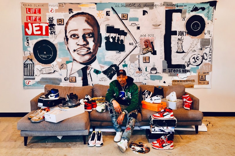 Since then, Juwop has continued to explore and intermingle his love of art and sneakers, all while attacking his artistic efforts with an athlete’s fervor, determination and love of competition. “I want to feel like Michael Jordan every day of my life. I paint with a certain competitiveness and really challenge myself — I got that mindset from athletics and I’ve really channeled it in my artwork,” he tells HYPEBEAST.