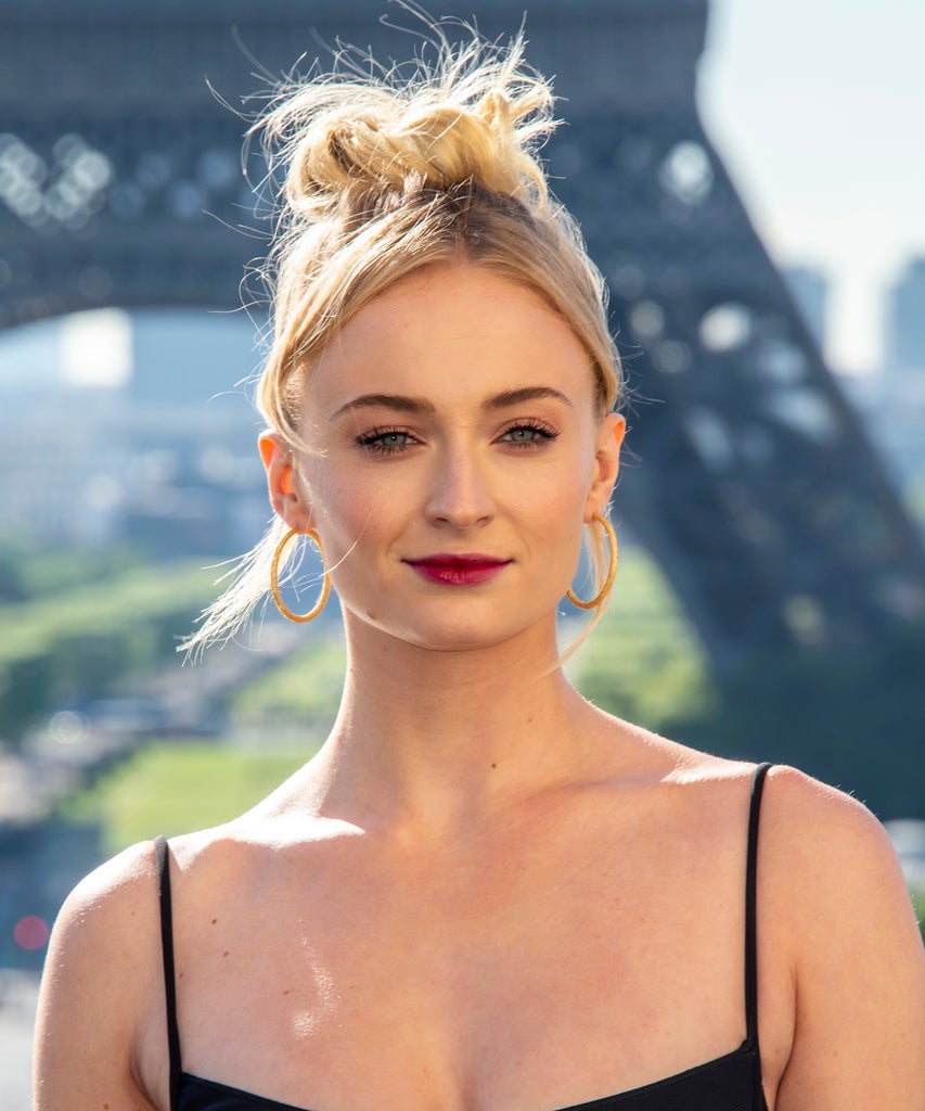 Rihanna isn’t the only one taking her pajamas out for a night on the town. On Tuesday night, Game of Thrones’ Sophie Turner wore a purple, check print pajama set for date night at Nobu in Los Angeles with husband Joe Jonas. Toning up the bedtime look, she opted for white, block-heeled mules, a matching ‘90s-style shoulder bag from Staud, and a lace bra that peeked out from underneath the low-buttoned top. With a beaded necklace topping off the ‘fit, she looked like an Instagram ad for It Girl-favorite indie retailer Lisa Says Gah.
