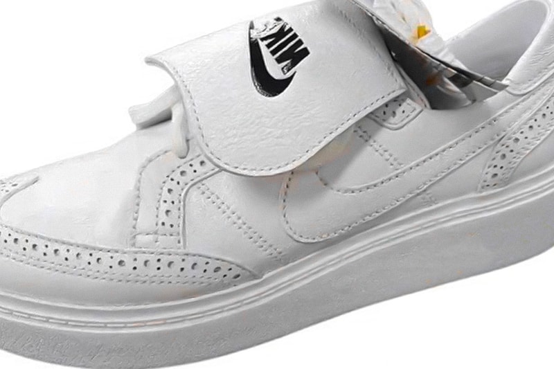 The unique formal leaning lifestyle sneaker comes in a “Triple White” colorway with a low cut upper constructed of smooth leather. Accents come in the form of wingtip perforated overlays, midfoot Swooshes and flipped lace shrouds marked with “PEACEMINUSONE” and “NIKE” branding. Rounding up the design of the shoe are embroidered daisy motifs at the rear and welted sole units expressing daisy treads and “PEACEMINUSONE” detailing.