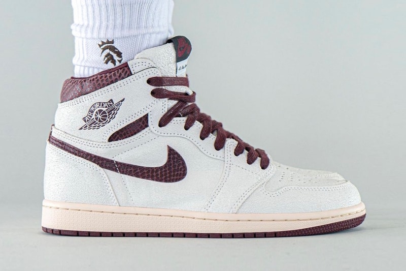 Uppers are dressed in sail suede with burgundy accents on the laces, ball-and-wing logos, tongue tab branding and snakeskin Swoosh and collars. Similar to the aforementioned “Raised by Women” Air Jordan 3‘s, the shoes feature a concealed note found on the interior of the ankle flaps bearing Michael Jordan‘s signature and a quote reading: “You have to expect things of yourself before you can do them.” Other fine details include lush quilted lining, and co-branding on the tongue and insole. Below, a yellowed midsole and full burgundy outsole complete the look.
